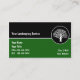 Cartes de visite d'entretien de pelouse avec une grande silhouette d'arbre et design moderne vous pouvez customiser en ligne. Parfait pour les thèmes cartes de visite liés à l'aménagement paysager de la pelouse ou à l'aménagement des arbres.