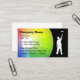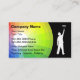 Cartes de visite peintre avec arrière - plan de roue coloré dans un arc-en-ciel de couleurs, avec un peintre avec un rouleau de peinture et disposition de texte qui est facile à customiser. Meilleurs cartes de visite pour des thèmes liés à la peinture de maison, l'entrepreneur de peinture, peintre commercial, ou les revêtements et fournitures de peinture.