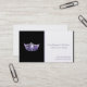 Montré dans un carte de visite de taille standard mais sur stock de carte perle avec un shimmer léger. Il a une couronne violette glamour avec un espace pour remplir tous vos détails importants. Style classique. Le dos est vide pour que vous personnalisiez plus avec votre adresse, les heures et le temps de rendez-vous, si désiré. Customisez plus loin en téléchargeant votre propre photo de tête au lieu de la couronne, si vous préférez.