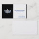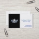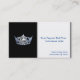 Montré dans un carte de visite de taille standard mais sur stock de carte perle avec un shimmer léger. Il a une couronne bleu-argent glamour et un espace pour remplir tous vos détails importants. Style classique. Le dos est vide pour que vous personnalisiez plus avec votre adresse, les heures et le temps de rendez-vous, si désiré. Customisez plus loin en téléchargeant votre propre photo de tête au lieu de la couronne, si vous préférez.