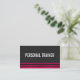Ces cartes de visite personnels énervés d'entraîneur sont sûrs d'attraper l'attention de vos clients ! Ils comportent un fond d'image en métal, avec 3 lignes en acier balayées roses au fond. Ils évoquent un sentir professionnel audacieux et fort pour complimenter parfaitement vos affaires de forme physique. L'avant contient l'expression "entraîneur personnel" (personnalisable) et le dos contient la pièce pour votre nom, fonction et détails de contact.