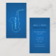 Cartes de visite illustrés pour les joueurs de saxophone ou les instructeurs; conception de musique néon bleu avec illustration de saxophone sur arrière - plan bleu; conception personnalisée avec champs de texte personnalisables pour ajouter vos nom, affaires, adresse et autres informations