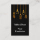 cartes de visite électriques modernes et classiques à deux côtés dans un modèle en ligne avec des ampoules électriques de couleur or accrochées à l'avant et votre profession affichée avec vos coordonnées à l'envers avec deux impressions latérales incluses.