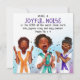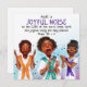 Un trio de femmes afro-américaines habillées en blanc avec des ceintures de couleur individuelle chantent des louanges pour les vacances, faisant un bruit joyeux avec les mains, la voix et l'instrumentation.