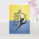 En gymnastique, le ruban sur le sol est un grand acte à faire. Cette conception est une routine de plancher de gymnastique. Le gymnaste est sur le sol dans un saut avec le ruban dans un motif tourbillonnant agréable. Ce ruban de gymnastique a l'air super sur ces cartes de voeux