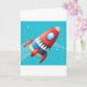 Rêver de voler à travers l'espace dans un vaisseau spatial. Eh bien, ce design répondra à ce rêve. Il est sorti d'un vaisseau spatial coloré qui vole dans l'espace. La fusée est multicolore et a une piste de vapeur à l'arrière. Il est dressé contre un arrière - plan bleu. Cette conception de vaisseaux spatiaux volants est superbe sur ces cartes de voeux