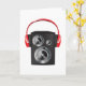 Ce design est un casque rouge. Les écouteurs sont placés sur un haut-parleur. Cette conception de casques rouges semble très bien sur cette Cartes de voeux