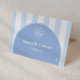 Conception de carte d'identification individuelle de thème côtier élégante et discrète. Peut également être utilisée comme étiquettes alimentaires / cartes de buffet. Toutes les couleurs (rayures, arche de fond, icônes et bien sûr couleurs de police) peuvent être modifiées par vos soins à l'intérieur de l'outil de conception. Veuillez noter que ceci sera livré sous forme de carte plate de 5x3,5 que vous devrez marquer et plier vous-même.