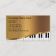 Cartes d'industrie musicale avec le piano et le noir et l'arrière - plan d'or qui donne à ce modèle de carte de visite un regard de classe. Customisez la couleur ou la disposition des textes et faites ce travail pour vous comme musicien, barre de piano, ou carte de visite de leçons de musique.