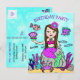 Un moyen mignon et abordable d'inviter des amis à la fête d'anniversaire d'une petite fille. Une sirène caucasienne brune aux yeux verts et ses amis sous la mer, dessinés à la main dans un style d'art folklorique fantaisiste, pour une invitation d'anniversaire de fille aux couleurs vives.