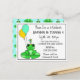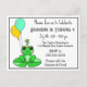 Cartes d'invitation d'anniversaire avec une grenouille mignonne assise sur un nénuphar avec un chapeau d'anniversaire et des ballons. Mignon pour l'anniversaire d'un petit garçon.
