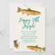 Cartes d'invitation pour l'anniversaire d'un homme adulte pêcheur. Truite mouchetée et leurre de pêche à la mouche sur papier écru avec texte bleu-vert foncé. Personnalisez facilement avec son nom, en caractères gras, en haut. Toutes les informations sur la fête sont ajoutées sous forme de paragraphe. Choisissez les options d'impression et / ou de téléchargement.