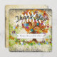 Carte de remerciement de mariage avec une bannière sur le devant de la carte avec les noms des mariés. Carte de remerciement de mariage à l'esthétique médiévale renaissance inspirée de l'arbre fleuri avec toutes les couleurs. Élégance terracotta rose, corail orange, jaune et fleurs bleues associées à un arbre brun ton terre et un design de fond en faux parchemin avec une bordure noire brûlée en spirale. Imaginez un arbre tourbillonnant romantique de printemps, d'été ou d'automne dans une forêt enchantée le long d'une route élégante de ferme campagnarde. Oh, tellement coloré et folklorique ! Une esthétique botanique d'art folklorique de conte de fées, c'est certain. De plus, avec toutes ces fleurs tourbillonnantes, ce design ludique irradie cette esthétique bohème et est parfait pour les mariages de