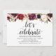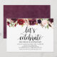 Cette carte d'invitation thématique florale bordeaux rustique est parfaite pour votre réception de mariage / célébration de fête. Ajoutez vos coordonnées dans une police / lettrage noir assorti.