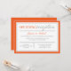 Cartes d'invitation de réception uniquement avec un design de typographie moderne orange et gris et une bordure orange et gris pour votre célébration post-mariage. Le verso est un orange uni.