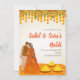 Cette invitation numérique DIY Haldi et invitations de mariage Haldi, invitation Holud ou invitations Pithi, une invitation fusion dans l'élégance traditionnelle, est complétée par des fleurs et des feuilles, parfaite pour vos célébrations de cérémonie Haldi.
