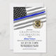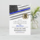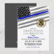 Cartes d'invitation amusantes pour la soirée de remise des diplômes de l'académie de police avec un drapeau de police à l'aquarelle avec une fine ligne bleue, un badge doré et une couronne de laurier, que vous pouvez personnaliser pour votre prochaine célébration.