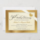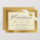 Créez vos propres invitations de fête d'anniversaire de mariage de 50 ans personnalisées -- Belle apparence de parchemin ivoire et métallisé or doré avec ruban blanc [imprimé] et cœur scintillant de pierre précieuse dorée. Typographie classique d'aspect gravé avec lettrage en écriture cursive fantaisie de style vintage -- Élégant, luxe abordable et personnalisé de manière unique pour vous ! Il suffit d'ajouter les noms, la date et les détails pour la célébration de ce jalon anniversaire spécial. **REMARQUE : Tous les éléments de ce design font partie de l'image IMPRIMÉE -- le ruban, le bijou et le cadre ne sont PAS en relief, gaufrés ou présentés comme de véritables embellissements. Formaté pour de petites cartes d'invitation. Cliquez sur "Personnaliser" pour modifier la taille, les options de papier ou