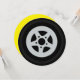 Cartes d'invitation pour fête d'anniversaire de course automobile pour enfants. Invitations pour fête sur le thème automobile pour l'anniversaire des enfants, barbecue, événement de conduite de voiture de course, etc. Texte et couleur de fond personnalisables. Conception de roue de voiture mignonne avec pneu et jante avec nom et âge de l'enfant personnalisés. Typographie fantaisiste. Personnalisez pour les joueurs et joueuses sportifs. Forme de découpe circulaire amusante. Illustration de jouets pour enfants. Créez des invitations circulaires pour les 4e, 5e, 6e, 7e, 8e, 9e, 10e, 11e, 12e, 13e anniversaires, etc. Également idéal pour les enfants de mécanicien ou de conducteur.