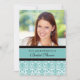 Douche nuptiale invitation personnalisée modèle photo dans le bleu turquoise élégant, noir et blanc classique damas floral classique, élégant et féminin, personnalisable avec vos détails de douche. Également disponible en cartes de remerciement et invitations pour la fête de mariage.