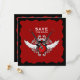 Annoncez votre mariage avec cette carte de Save the Date non conventionnelle dans le style rock avec des guitares électriques croisées, des ailes et des ornements vintage sur fond rouge et noir.