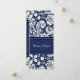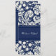 Cartes Elopement en bleu marine foncé élégant et crème blanc classique motif damassé floral, entièrement personnalisable avec vos noms et détails mariages, la manière parfaite d'annoncer votre elopement à vos amis et votre famille. Disponible dans une large gamme de produits mariages correspondants.