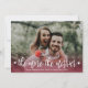 Photographie Cartes de Faire-part de grossesse de Noël. Attendez-vous à des parents ! Un script de typographie moderne à la main blanche écrit "plus le texte est plus plaisant" avec une carte en dégradé rouge pour partager vos bonnes nouvelles avec votre famille et vos amis pendant la saison des Fêtes. Sur le dos des flocons de neige sur arrière - plan rouge. Vous pouvez personnaliser la conception en remplaçant l'exemple de texte et la photo horizontale. #3344