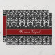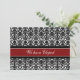 Cartes Elopement faire-part en élégant motif damassé floral rouge, noir et blanc classique, entièrement personnalisable avec vos noms et détails mariages, la façon parfaite d'annoncer votre elopement à des amis et à la famille. Disponible dans une large gamme de produits mariages correspondants.