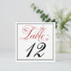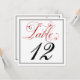 Cartes numéro de table à écriture rouge élégante