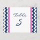 Elégante et moderne fuchsia rose chaud, bleu marine foncé et blanc mariage carte numéro de table avec motif rétro et amusant chevron zigzags. Customisez ces cartes pour créer des cartes numériques personnalisées pour chaque table de votre mariage. Motif disponible dans une large gamme de produits mariages correspondants.
