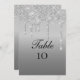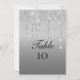 Mariage Cartes de numéro de table avec parties scintillant à goutte couleur argent.