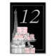 Cartes de table parisiennes avec élégante Tour Eiffel, table cadeau fantaisie et paire de chaussures talons hauts sur un choix de votre propre arrière - plan couleur. Ajoutez simplement vos numéros dans le style et la couleur de police que vous préférez, et changez la couleur arrière - plan si vous le souhaitez. Vous pouvez également supprimer la bordure argentée.