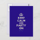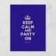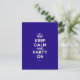 Basé sur l'original Keep Calm et ... poster cette crème et bleu Keep Calm et Party On Postcard dispose d'une police personnalisée qui correspond à l'original étroitement.