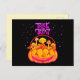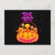 C'est la conception de la fête de l'halloween qui célèbre la prochaine Halloween. Cette kawaii dessinée à la main et illustration amusante présente un joyeux halloween, des champignons citrouilles et un tour ou un régal.