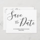 Cartes postales simples pour annoncer la date de votre mariage avec un texte noir script modifiable (vous pouvez changer le texte) imprimé sur fond blanc