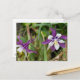 Des colonnes violettes émergent sous les arbres par jour couvert.