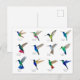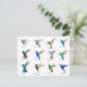 Carte postale unique représentant plusieurs espèces de colibris tropicaux peints à la main, tels que le colibri mango, le colibri coronette pourprée, le colibri à gorge bleue, le saphir à queue dorée, le colibri front étoilé foncé et le colibri oreille-de-violet mexicain, entre autres. Images tirées de mes peintures aquarelles originales.