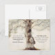 Carte postale de faire-part de mariage rustique avec un vieux chêne et un cœur en bois sculpté