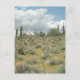 Vue panoramique d'un cowboy pastoral sur le désert en fleurs. De douces nuages tourbillonnent les verts doux de la brosse à gomme du désert et des cactus. Photo couleur prise dans le désert à l'extérieur de Scottsdale, une banlieue de Phoenix, Arizona. Personnalisez la carte postale du désert de Sonoran en Arizona avec vos propres textes et images en utilisant l'option "Customiser".