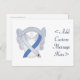 La carte postale de l'ange gardien présente l'image d'un ange tenant un ruban de conscience gris et bleu avec une goutte de sang dessus. Diabète dépendante de l'insuline Mellitus (IDDM), également connu sous le nom de diabète de type 1 ou de diabète juvénile, utilise ce ruban pour promouvoir la sensibilisation à sa cause. Ajoutez vos propres mots ou messages optionnels à la carte postale pour des cartes d'art anges personnalisées ! Vous pouvez également supprimer le texte d'une impression de carte postale d'ange uniquement pour l'art. Les cartes postales de peinture d'ange de conscience gris et bleu peuvent être customisées de messages personnalisés pour créer des images ou des images de sensibilisation pour les collecteurs de fonds, les cadeaux de sensibilisation ou d'autres événements spéciaux. Offrez cet art d'ange comme un cadeau de ruban de conscience pour toute occasion.