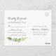 Laissez vos invités RSVP à votre mariage avec nos cartes postales RSVP en feuilles vertes rustiques. Le libellé est entièrement personnalisable - si vous avez besoin de changer la police, la couleur de police, la taille ou le placement des zones de texte, il suffit de cliquer sur le bouton "Cliquez pour customiser plus loin" pour changer ces choses. N'oubliez pas de consulter notre vaste sélection d'articles de coordination en parcourant la collection Rustic Greenery Mariage!