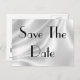 Carte postale romantique "Save The Date", invitations pour occasions spéciales et événements. Le fond est en satin blanc élégant. Le texte peut être facilement modifié et personnalisé. Idéal pour les mariages à venir, les fiançailles, les anniversaires de mariage et les fêtes d'anniversaire, etc. Le verso peut également être personnalisé avec plus de texte ou simplement supprimer le texte d'exemple pour écrire à la main plus tard.