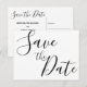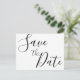 Cartes postales simples de mariage à l'écriture manuscrite pour annoncer la date avec un texte noir modifiable (vous pouvez changer le texte) imprimé sur fond blanc