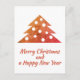 Arbre de Noël festif et simple Joyeux Noël et bonne année Script Carte de vœux de vacances. Les couleurs sont rouge festif, orange et doré.