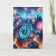 Une horloge géante avec des tours de minuit au-dessus d'une ville illuminée et vibrante avec des feux d'artifice colorés du Nouvel An explosant dans le ciel nocturne Le texte intérieur est modifiable.