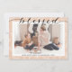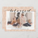 Boughes De Pin Beige Moderne Élégant Script Minimaliste Carte De Vacances. Envoyez des voeux de vacances personnalisables et personnalisés à vos amis, collègues et famille dans des cartes de style simple, chic, élégant et moderne design photo festif, naturel minimaliste! Une belle calligraphie de "bénie" dans les cadres votre photo en face. Vous trouverez ci-dessous votre message de bienvenue personnalisé de votre nom de famille dans la typographie moderne. Reverse pour révéler un bel arrière - plan de papier motif rose fleuri & pin.