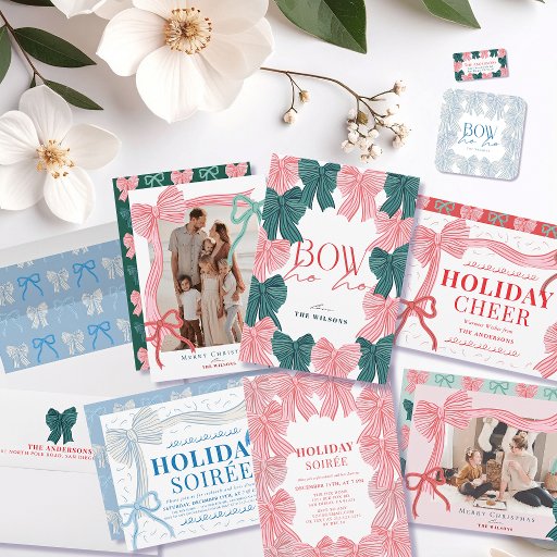 Cartes Pour Fêtes Annuelles Bow Ho Ho Rouge et Rose Bows Noël