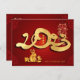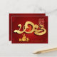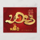 Des pétards chinois en tant qu'arrière - plan pour une grande dorée 2023 avec l'accueil en chinois à l'intérieur du numéro + "HEUREUX NOUVEL AN CHINOIS" et papier coupé en or (image imprimée) d'un lapin. Conception sur carte postale horizontale de vacances avec le même arrière - plan à l'arrière. Carte de voeux, invitation, et plus bientôt...