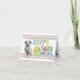 Couvrez l'image des oreilles de port et de tenir d'un lapin de chiot dalmatien un panier de Pâques d'oeuf coloré décoré. Le texte personnalisable intérieur lit : "Mai votre Pâques soit enveloppée dans le bonheur et attachée avec amour".