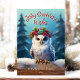 Cette adorable carte de voeux de vacances présente une jolie illustration de Chouette neigeuse portant une couronne festive de fleurs d'hiver, de saints, de pins et de baies, avec des flocons de neige tombant doucement contre un arrière - plan de la forêt d'hiver. La petite Chouette survole le rond enneigé pour dire bonjour ! Le texte ludique "Jolly Owliday Wives" ajoute une chaleureuse salutation saisonnière, et peut être customisé comme vous voulez. L'envers est décoré d'un chèque en plastique classique, ajoutant une touche traditionnelle à l'ensemble. Cette carte, mignonne et ludique, est parfaite pour envoyer des encouragements de vacances à la famille et aux amis, et le nom et la date personnalisables en font un gardien personnalisé.